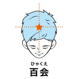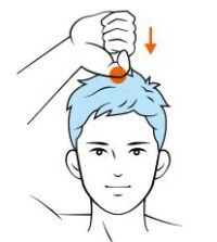 親指の第一関節で百会を真下へ向かって押し付けます。