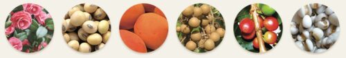 ツバキ、ダイズ、アンズ、リュガン、コーヒー、ハトムギ